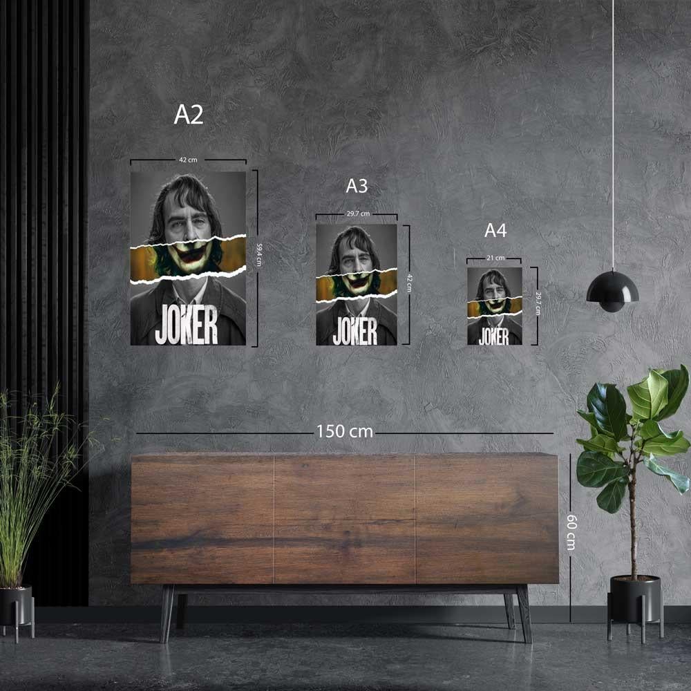 استعرض الجانب المظلم من آرثر فليك مع هذه اللوحة المعدنية التي تعرض بوستر فيلم الجوكر (2019) المؤثر! يظهر وجه الجوكر وكأنه ممزق، يكشف عن عمق شخصيته المضطربة والتحول الذي مر به. مطبوعة بجودة HD على معدن متين يضيف لمسة فنية ودرامية إلى مساحتك.