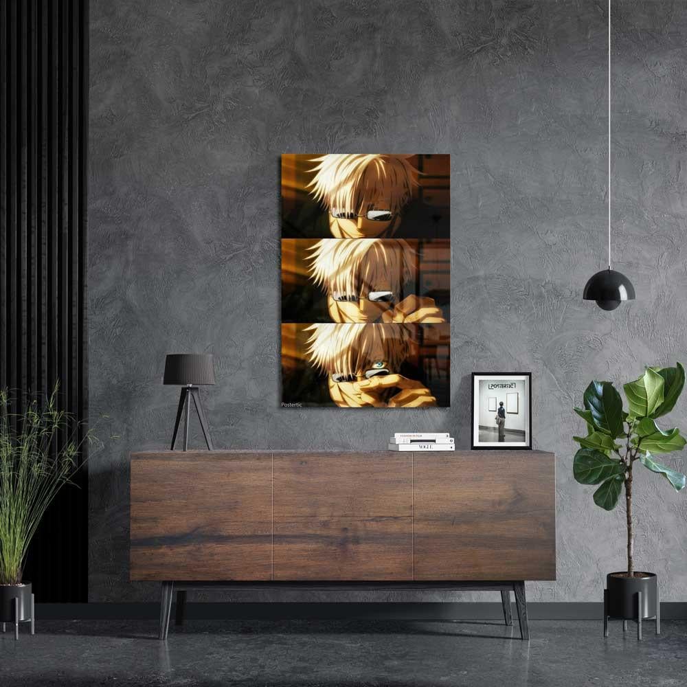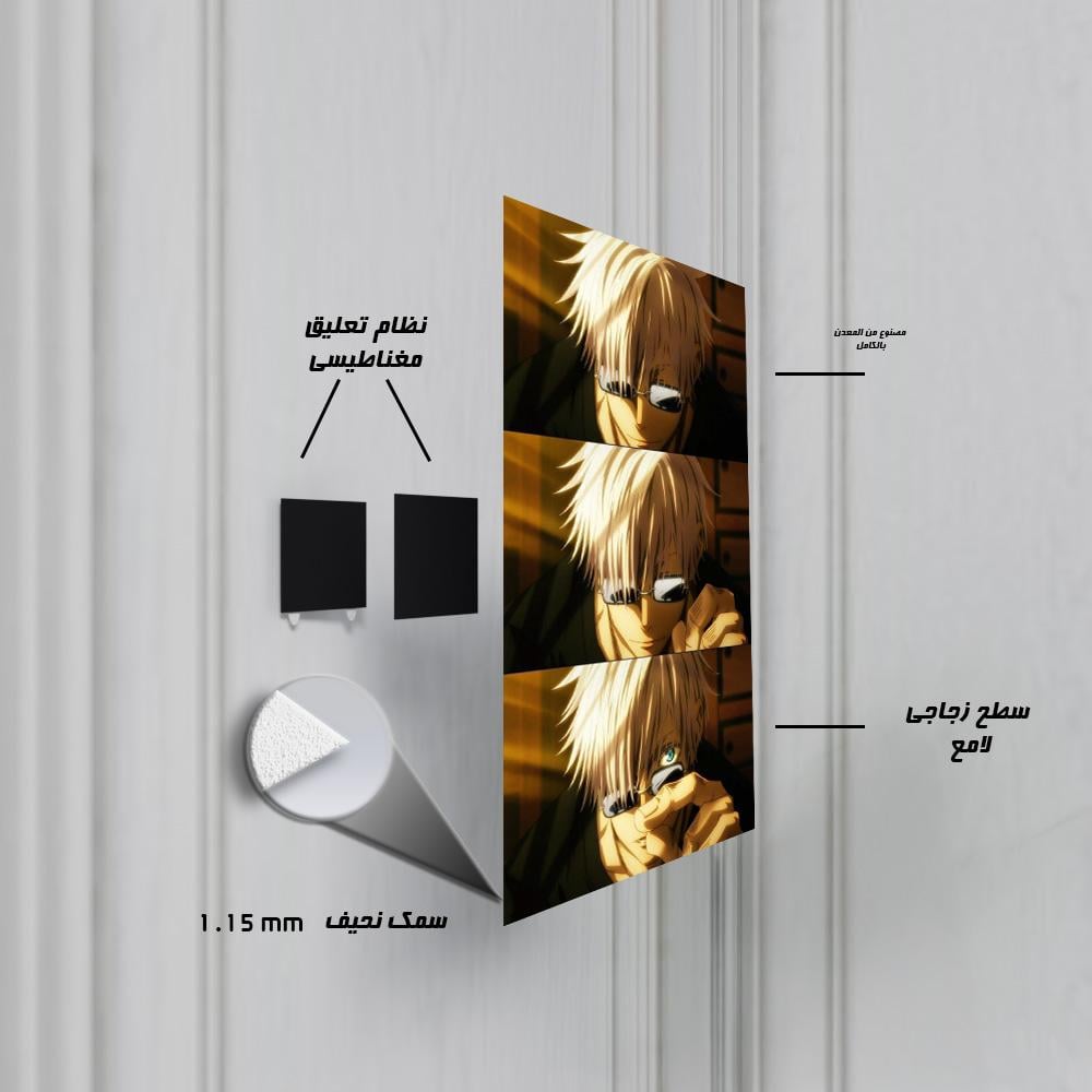استشعر عمق القوة والذكاء مع هذه اللوحة المعدنية الفنية التي تعرض شخصية غوجو ساتورو، أقوى ساحر في "جوجوتسو كايسن"! يعرض هذا البوستر تسلسلاً دراميًا للحظة خلع غوجو لنظارته، كاشفًا عن عينيه الزرقاوين الساحرتين "اللامحدودة"، مما يعكس نظراته الثاقبة وقوته الخارقة. مطبوعة بجودة HD فائقة على معدن متين، هذه اللوحة ستكون إضافة أيقونية لمحبي أنمي "جوجوتسو كايسن" وعشاق شخصية غوجو ساتورو الكاريزماتية.