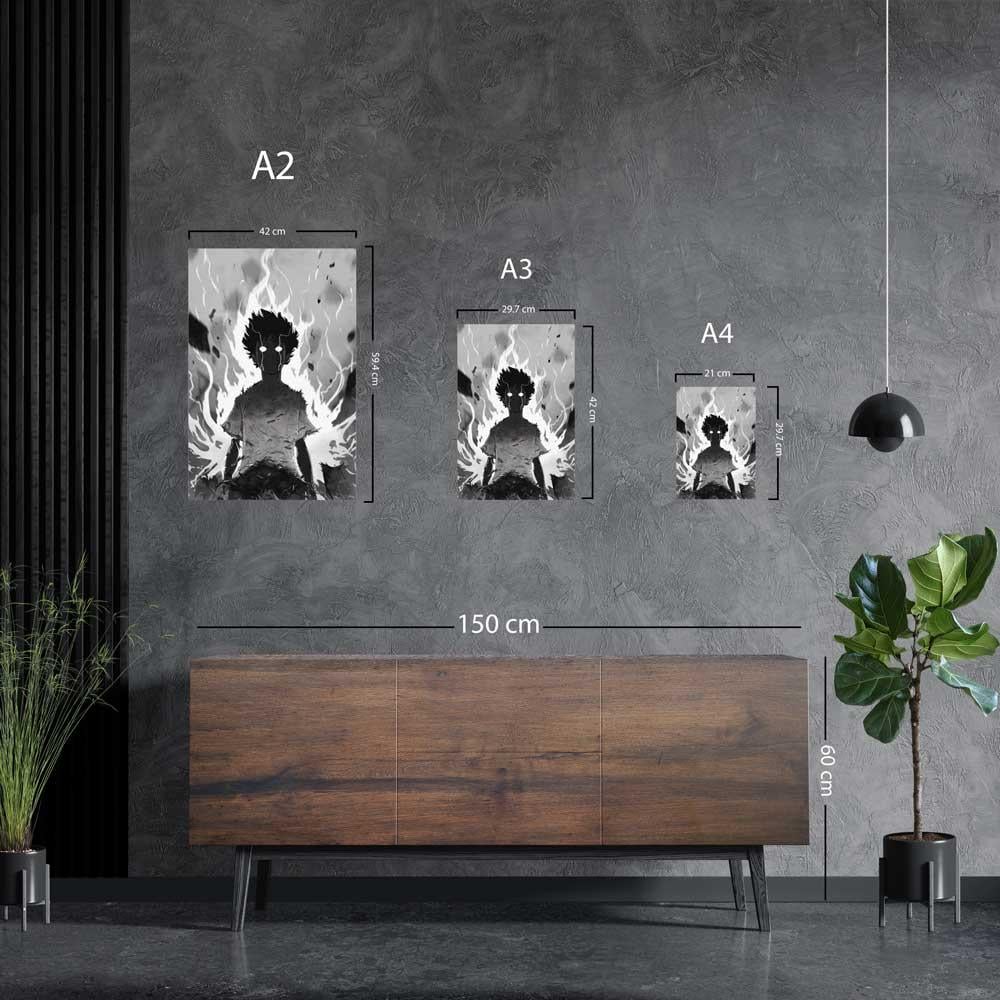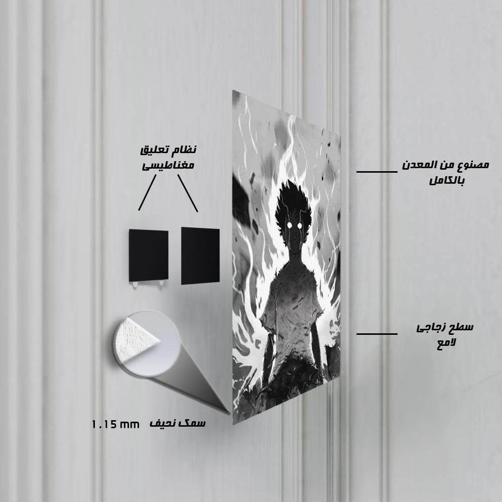 أضف طابعًا فنيًا فريدًا إلى مساحتك مع هذه اللوحة المعدنية المميزة المستوحاة من الأنمي الشهير "موب سايكو 100". تتميز برسمة مذهلة تجمع بين البساطة والقوة في شخصية موب مع تأثيرات بصرية رائعة باللونين الأبيض والأسود.