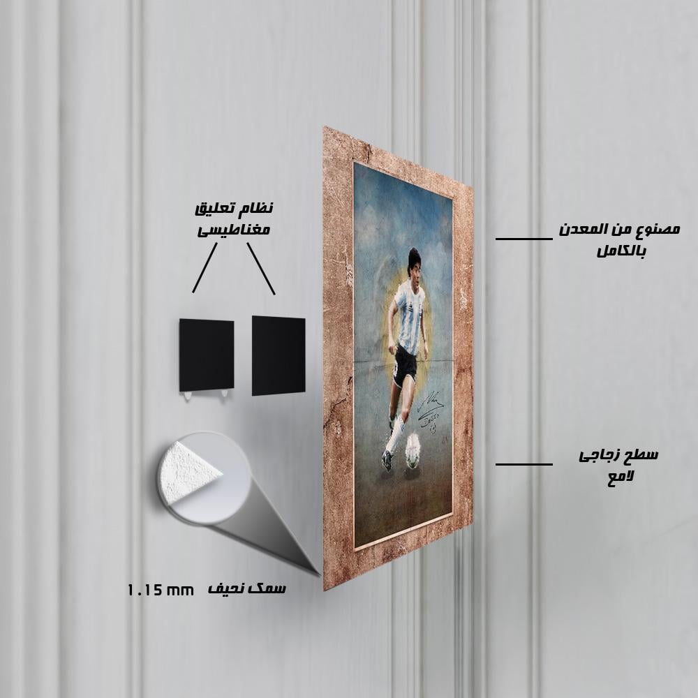 خلّد أسطورة كرة القدم الخالدة، دييغو مارادونا، مع هذه اللوحة المعدنية التي تعرض بوستر بتصميم مرسوم باليد! يظهر مارادونا في لقطة حيوية وهو يركض بالكرة، في تصميم فني يجسد مهاراته الاستثنائية وسحره في الملعب. مطبوعة بجودة HD على معدن متين يضيف لمسة فنية ورياضية فريدة إلى مساحتك.