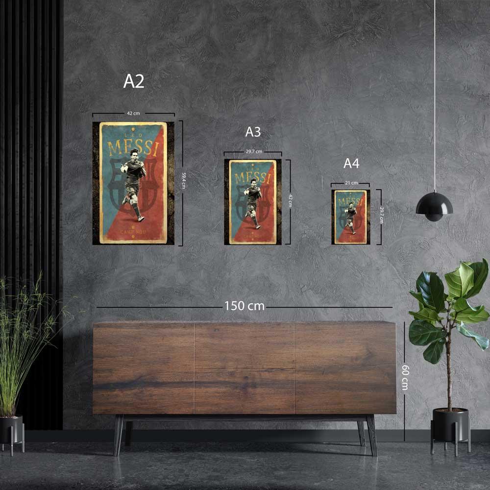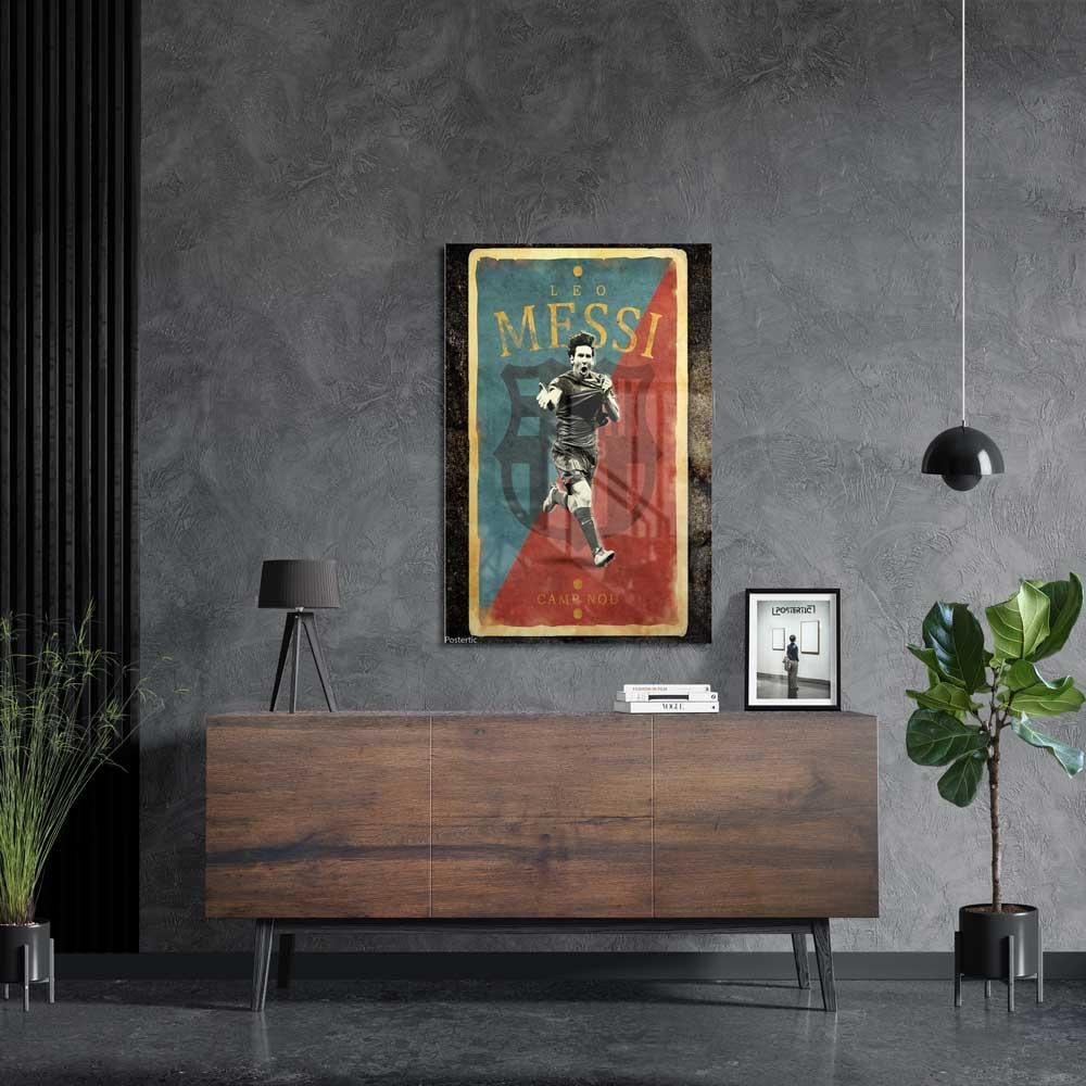 لوحة معدنية | بوستر ميسي برشلونة: تصميم عتيق