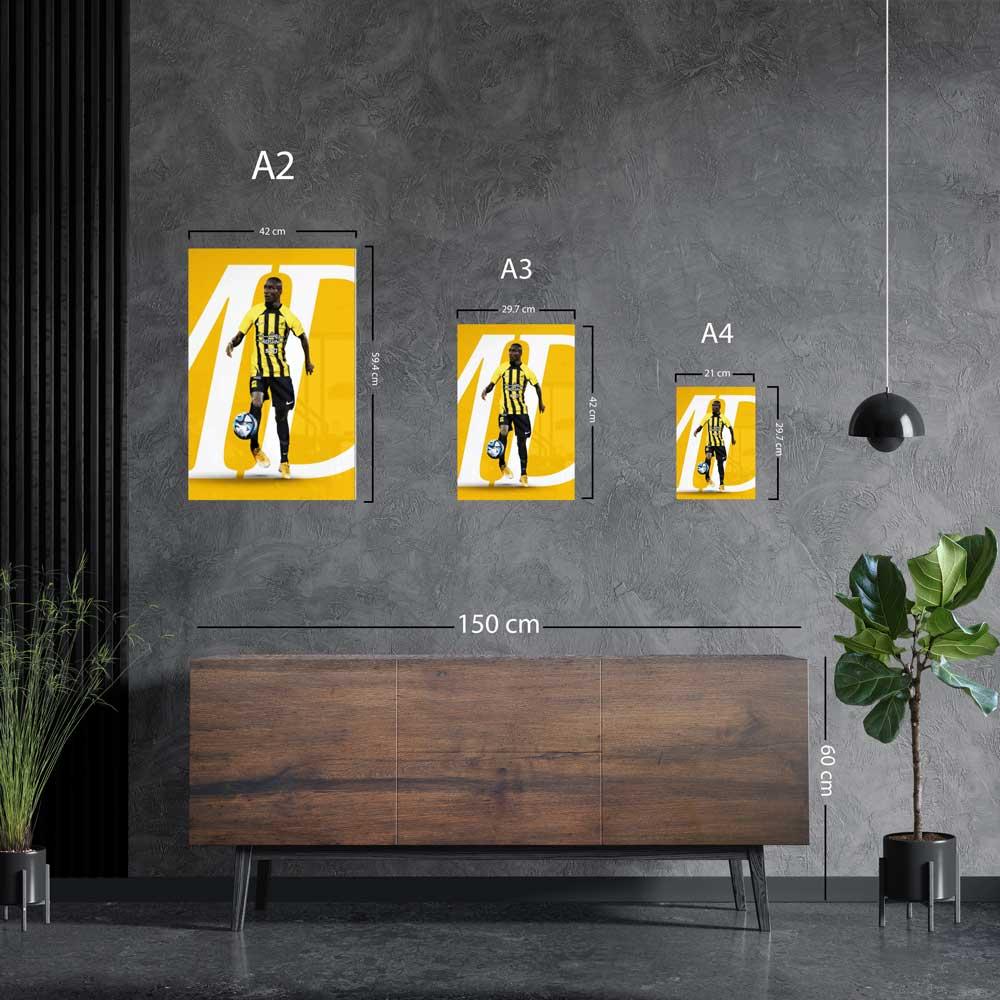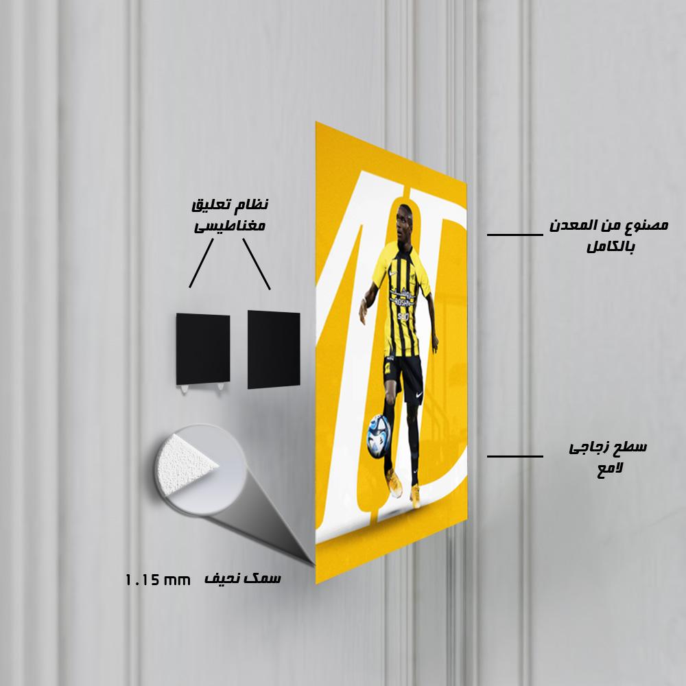"أضف لمسة فنية إلى جدرانك مع هذه اللوحة المعدنية الأنيقة التي تصوّر النجم موسى ديابي بأسلوب مميز يعكس مهارته العالية وإبداعه في صفوف نادي الاتحاد! تصميم فريد يجمع بين الروح الرياضية والجمال الفني، ويضفي لمسة من الفخر والتميز على أي مكان."