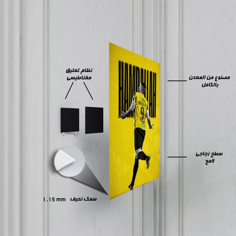 زين جدرانك بهيبة الاسم مع هذه اللوحة المعدنية المذهلة التي تصوّر النجم عبدالرزاق حمدالله بقميص نادي الاتحاد وخلفية تبرز اسمه بأحرف كبيرة و تصميم فريد يعكس قوة اللاعب وشهرته الواسعة، ويضفي لمسة من الفخر والتميز على أي مكان."