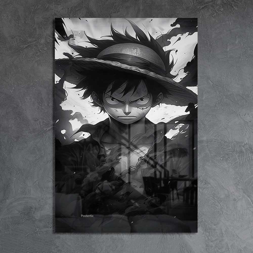 لوحة معدنية | بوستر مونكي دي لوفي من أنمي ون بيس بخلفية دخانية
