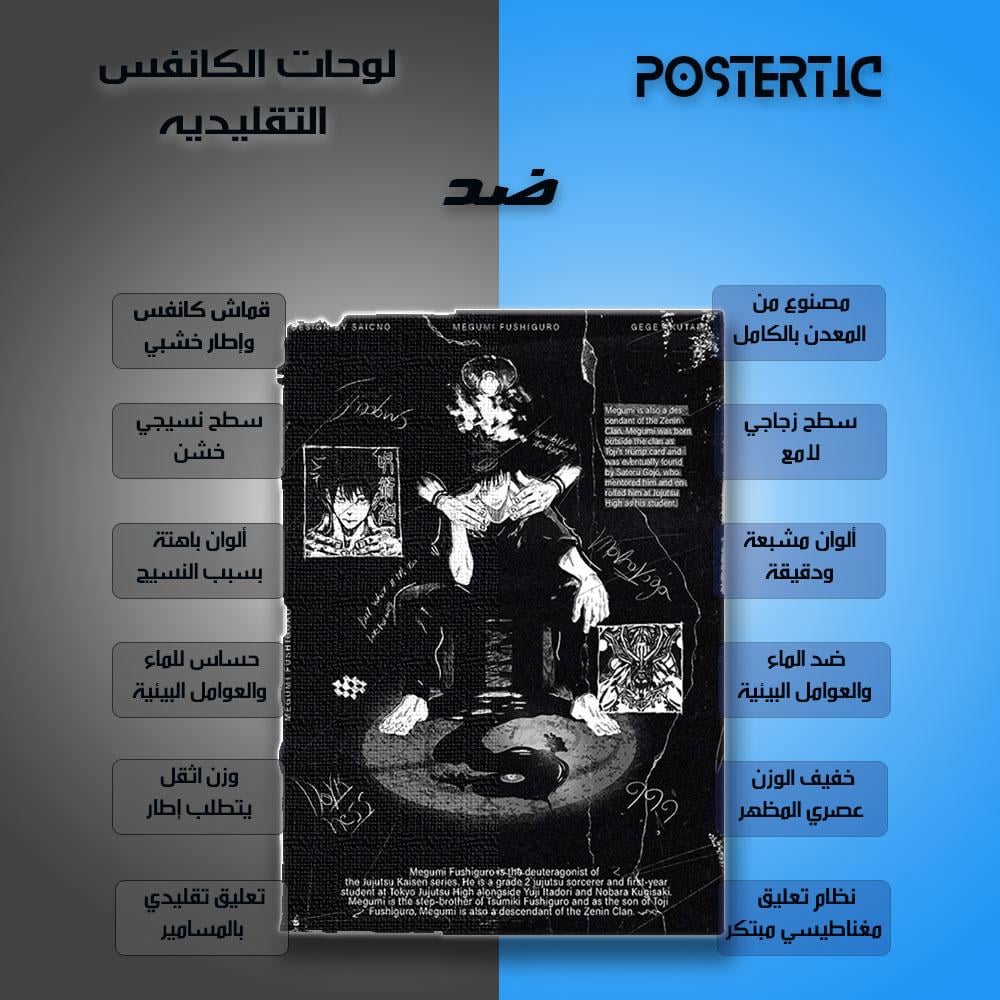 انغمس في عالم القتلة السحرة مع هذه اللوحة المعدنية التي تعرض بوستر فنيًا لشخصية ميغومي فوشيغورو من أنمي "جوجوتسو كايسن"! يتميز التصميم بأسلوب جرانج جريء باللونين الأبيض والأسود، مع تفاصيل مستوحاة من رسوم المانغا تبرز حضور ميغومي القوي ومهاراته في استخدام الظلال. يتضمن البوستر أيضًا معلومات بارزة عن الشخصية، مما يجعله قطعة فنية متكاملة. مطبوعة بجودة HD على معدن متين يضيف طابعًا عصريًا وغامضًا إلى مساحتك.