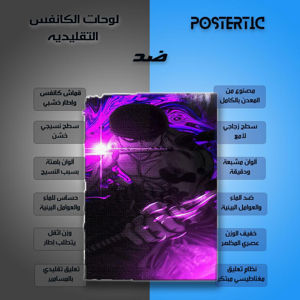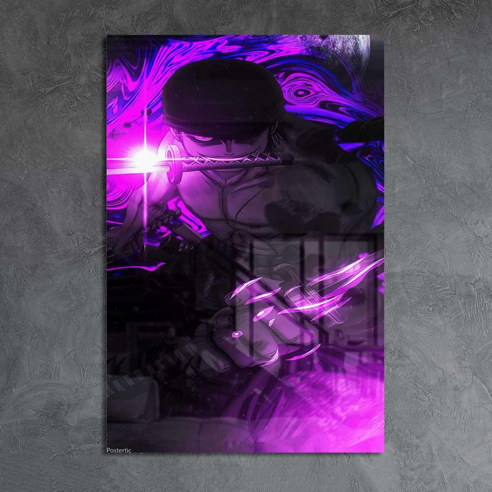استعرض قوة السياف الأسطوري رورونوا زورو وسيفه "إنما" المتوهج مع هذه اللوحة المعدنية الفنية! يعرض هذا البوستر شخصية رورونوا زورو، سياف قراصنة قبعة القش الأسطوري، في تصميم جريء يبرز سيفه "إنما" (قاطع الجحيم) وهو يتوهج بلون أرجواني ساطع، محاطًا بهالة من الطاقة الأرجوانية المكثفة التي تعكس قوته الهائلة وتحكمه في سيوفه. مطبوعة بجودة HD فائقة على معدن متين، هذه اللوحة ستكون إضافة مثيرة لمحبي أنمي "ون بيس" وعشاق مهارات زورو القتالية.