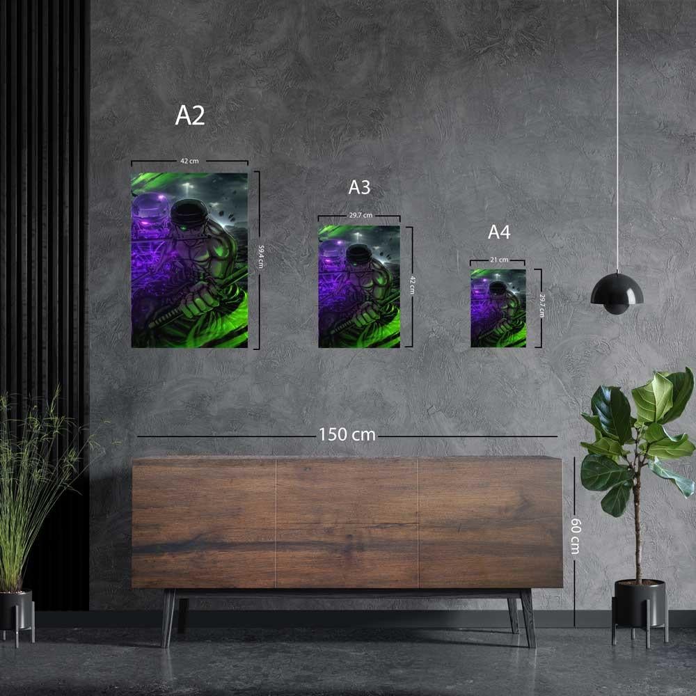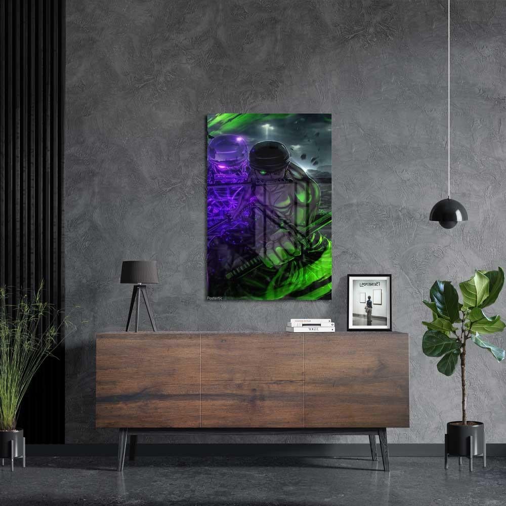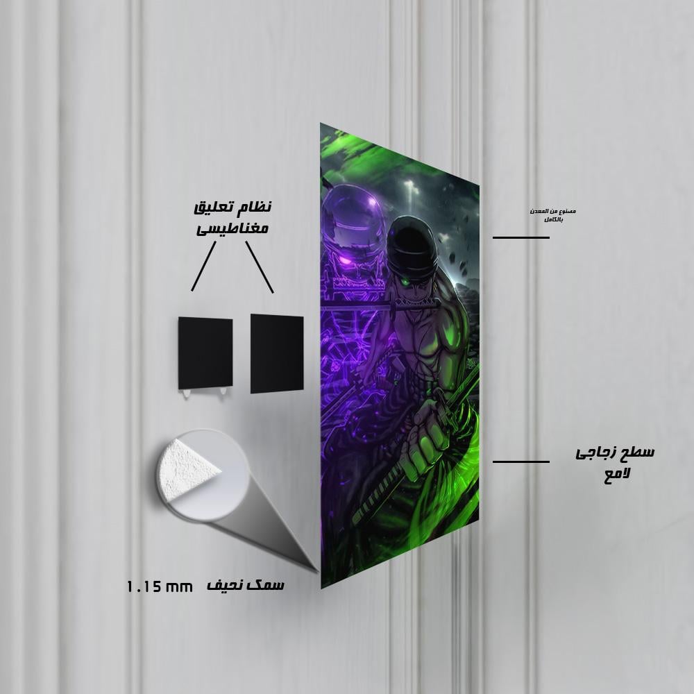 أطلق العنان لطاقة سياف القراصنة في مساحتك مع هذه اللوحة المعدنية الفنية! تعرض هذه اللوحة بوستر رونوا زورو من أنمي ون بيس، في تصميم مهيب يبرز قوته الجبارة وهالته القتالية، مع تأثيرات ضوئية خضراء وبنفسجية تعكس طاقته وتصميمه، وخلفية ساحة ضبابية تزيد من جو الغموض. مطبوعة بجودة HD فائقة على معدن متين، هذه اللوحة ستكون إضافة مثالية لأي محب لأنمي ون بيس وعشاق سياف قبعة القش زورو.